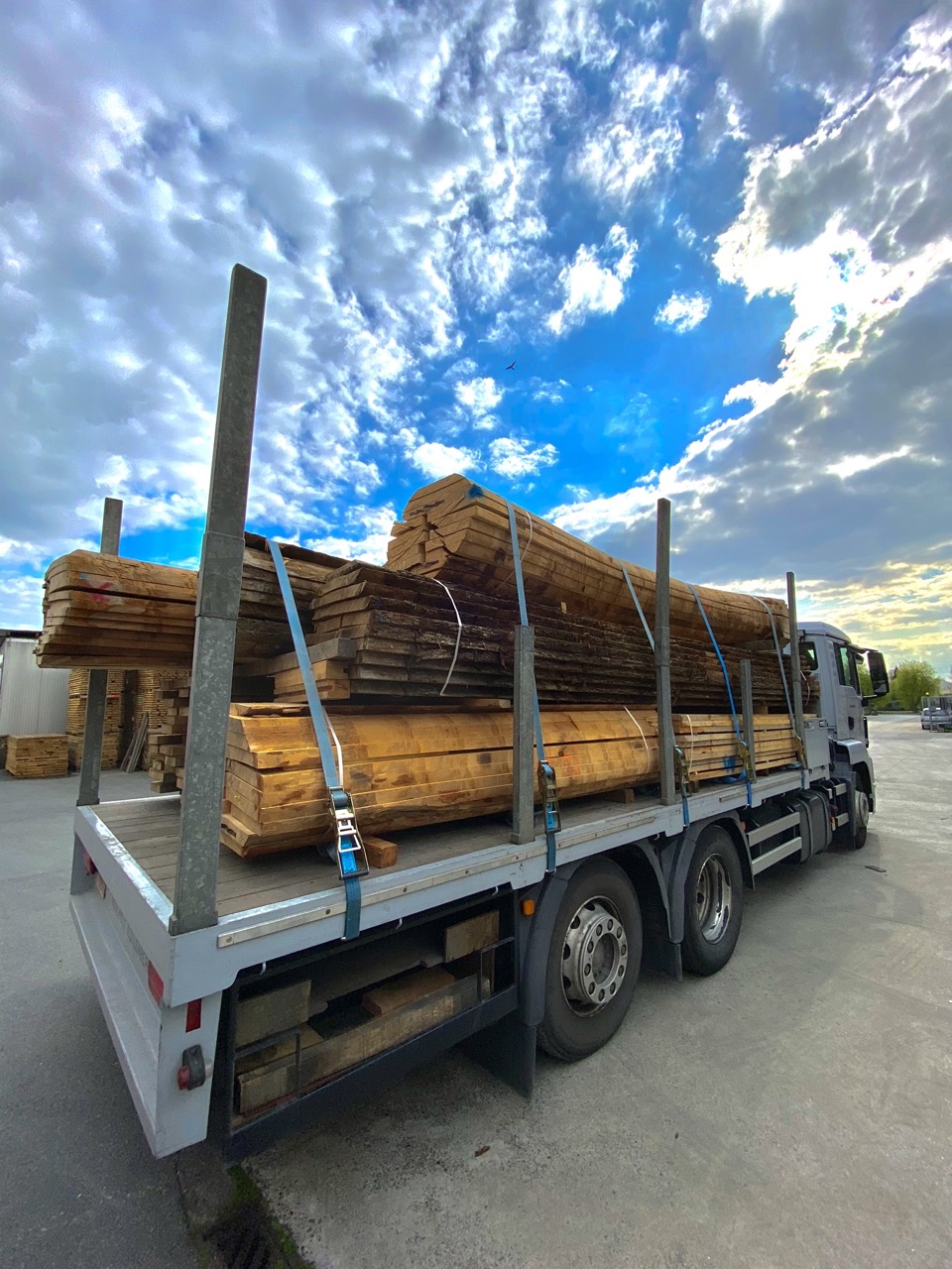 We kunnen de stammen vers, winddroog of ovendroog aanbieden aan de houthandelaars of trappenmakers.